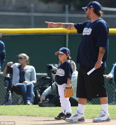 Kevin Federline allena suo figlio Sean Preston durante una partita di baseball a Los Angeles.. Kevin Federline accompagnato dall'incinta fidanzata Victoria Prince, allena suo figlio Sean Preston durante una partita di baseball di West Hills. Federline e Victoria di recente hanno detto a US Magazine che aspettano una bambina.